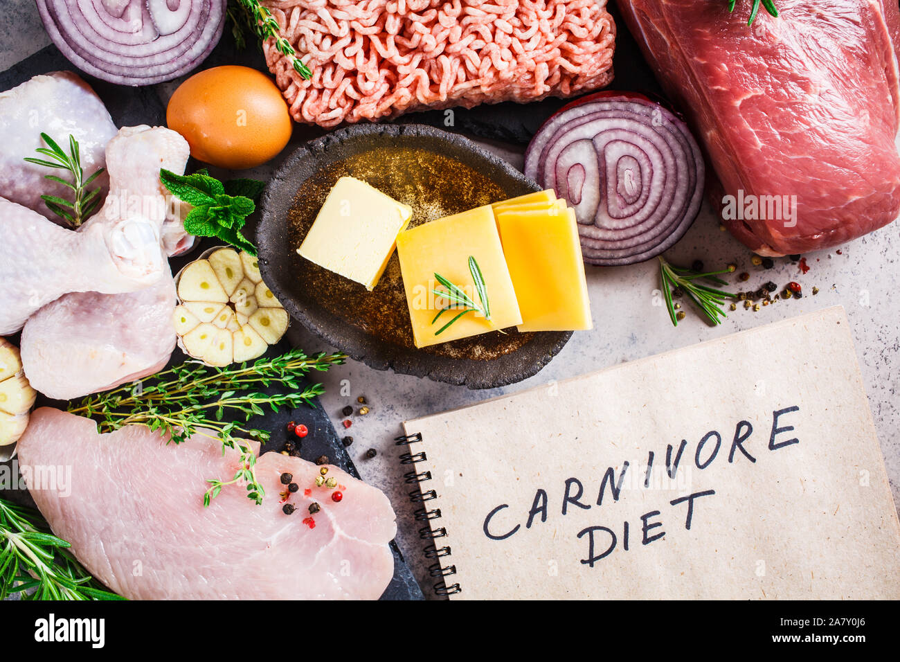Carnivore Diet Concept Raw Meat Of Chicken Beef Butter Cheese Eggs Minced Meat And Turkey On A Dark Background Top View Flat Lay Stock Photo Alamy